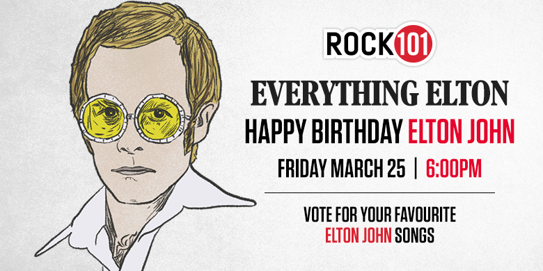 To celebrate the one and only ELTON JOHN, join Rock 101 on March 25th as we play a Top 6 @ 6 as voted by YOU!
