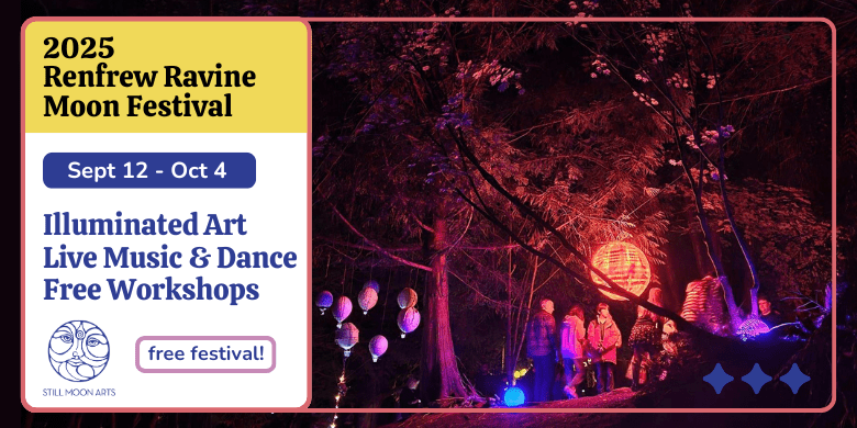 The Wetlands theme is reflected in illuminated art, live music, interdisciplinary performances and workshops from September 12th to October 4th. All events are free at this annual festival, which connects arts, nature, and diverse cultural traditions in Vancouver’s Renfrew-Collingwood neighbourhood.